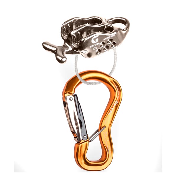 Il Master Pro Kit è composto da un moschettone Clepsydra L K10G e da un secchiello Master Pro. Soluzione ideale e completa per l’assicurazione, grazie alla forma del moschettone, che mantiene la sua posizione in maniera precisa, e alla versatilità del Master Pro, che può essere usato sia come secchiello sia come piastrina e che ha diverse possibilità di frenata.
