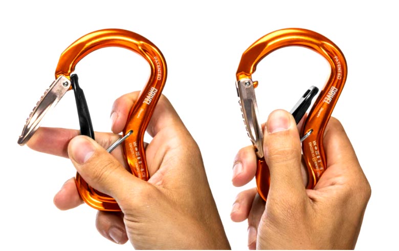 – doppia apertura Twin-Gate (Leva-Leva) per garantire la sicurezza della mancata apertura accidentale del moschettone “sempre e comunque”
