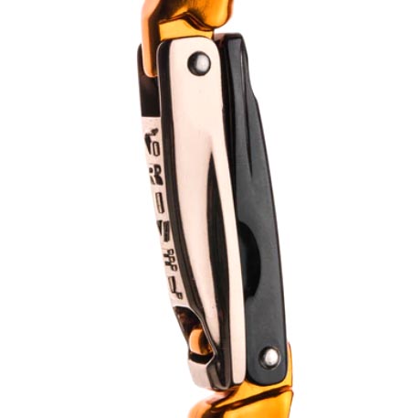 Moschettone unico nel design a forma di clessidra in cui una semplice apertura a filo isola l’anello di sicurezza e mantiene l’orientamento corretto anche con il moschettone aperto. La forma garantisce il posizionamento dello stesso automaticamente. Utilizzato per l’assicurazione e per le discese in corda doppia. Clepsydra è il punto di arrivo di una analisi delle diverse problematiche che si sono verificate nell’assicurazione di un compagno: