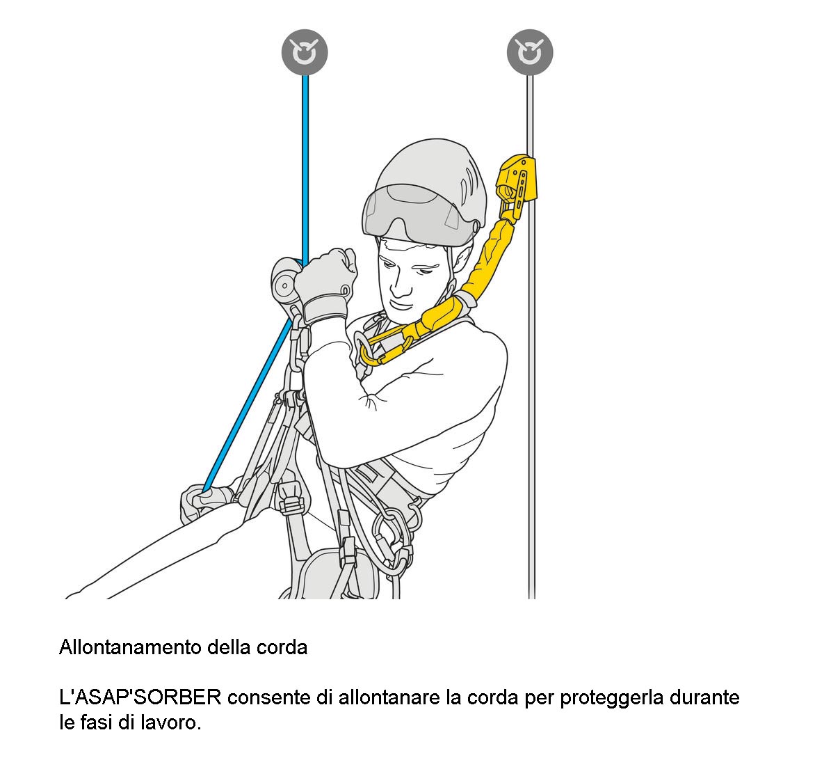 L’assorbitore di energia ASAP’SORBER può essere utilizzato solo con un dispositivo anticaduta mobile ASAP o ASAP LOCK. Consente all’utente di lavorare a distanza dalla fune, al fine di proteggerlo durante determinate fasi di lavoro. Dotato di fettuccia a strappo all’interno di una busta che si apre su ciascuna estremità, l’assorbitore è protetto dalle abrasioni, consentendo al contempo un controllo regolare. È disponibile in due lunghezze, per fornire il miglior equilibrio tra distanza dalla fune e lunghezza di caduta ridotta.