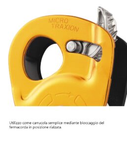 Ecco una descrizione tecnica e approfondita della Petzl Micro Traxion, la carrucola bloccante ad altissimo rendimento che rappresenta lo standard di riferimento per il soccorso, il lavoro su fune e l’alpinismo tecnico.