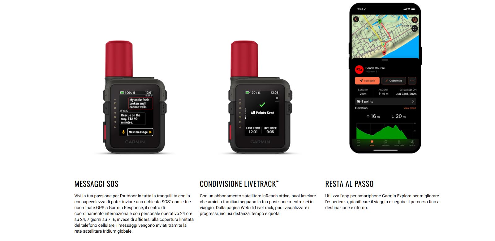 Invia e ricevi SMS o attiva un messaggio SOS interattivo in remoto collegando determinati prodotti Garmin compatibili.