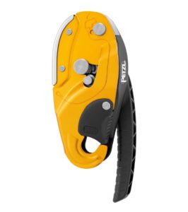 – passaggio automatico della maniglia in posizione di riposo quando la fune è rimossa dal dispositivo, riducendo così il rischio di aggancio involontario quando si porta il discensore sull’imbracatura.
