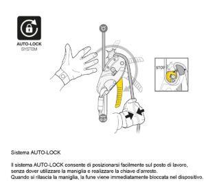 – dispositivo dotato del sistema AUTO-LOCK che consente di posizionarsi sul posto di lavoro, senza dover utilizzare la maniglia o realizzare la chiave d’arresto.