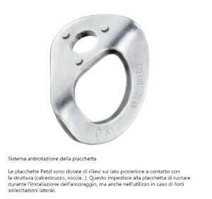 • Sistema antirotazione della placchetta: rilievi sul lato posteriore impediscono alla placchetta di ruotare durante l’installazione dell’ancoraggio, ma anche nell’utilizzo in caso di forti sollecitazioni laterali.