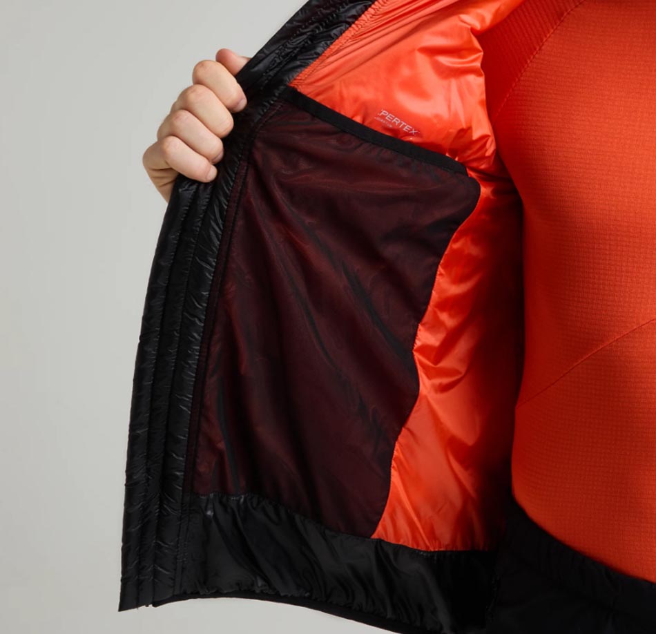 PERTEX® QUANTUM (36 g/mq): i capi realizzati in PERTEX QUANTUM® hanno il miglior rapporto peso/prestazioni meccaniche. Questo prodotto in Nylon riciclato ultralight è soffice come la seta, estremamente comprimibile, con eccellente resistenza all’usura e protezione dall’umidità esterna, dal vento e dalla pioggia: il tessuto non si inzuppa, asciuga rapidamente grazie allo speciale finissaggio idrorepellente PFCec FREE DWR, che assicura l’assenza di composti fluorurati dannosi per l’ambiente. ANTIUV: UPF50+.
