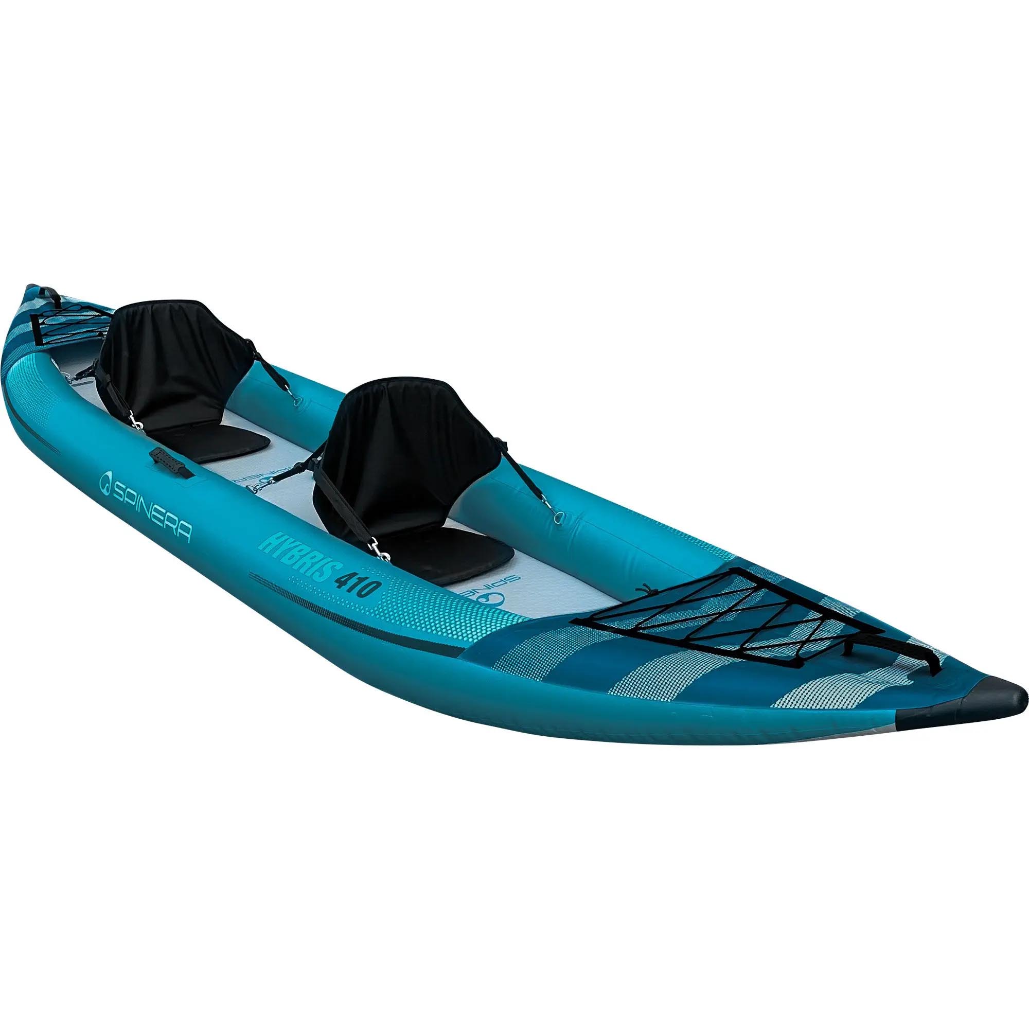 Lo Spinera Hybris 410 è un kayak ibrido gonfiabile che combina materiali all’avanguardia con un design curato. I tubolari laterali in PVC rinforzato e il fondo in resistente telone garantiscono un’eccellente stabilità e durata. Il fondo in HDDS (High Density Drop Stitch) da 8 cm offre una rigidità eccezionale, offrendo un’esperienza di pagaiata simile a quella di un kayak rigido.