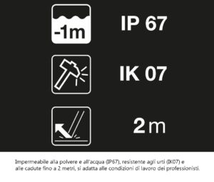 – robusta, la lampada resiste agli urti (IK07) e alle cadute (fino a 2 metri),