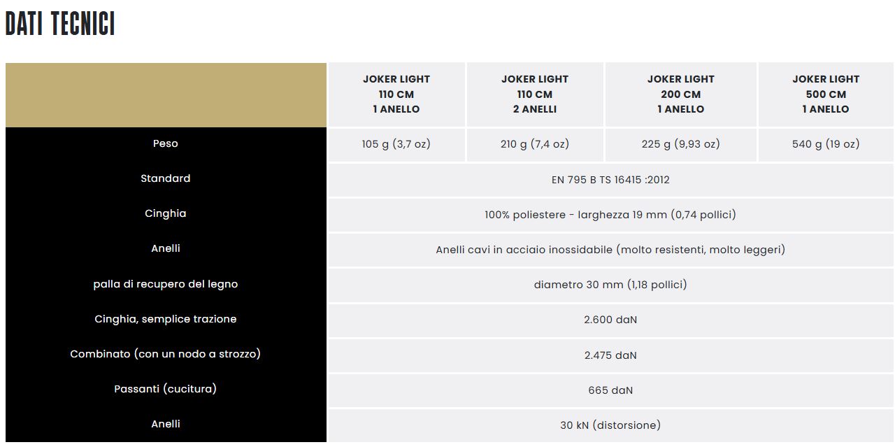 La nuova gamma JOKER è più leggera e più facile da individuare sugli alberi. I nuovi anelli sono molto resistenti e la gamma è completata da una lunghezza per ancoraggi a terra.