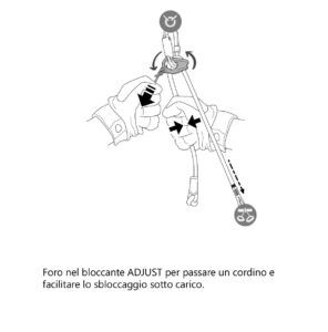 – foro nel bloccante ADJUST per passare un cordino e facilitare lo sbloccaggio sotto carico,