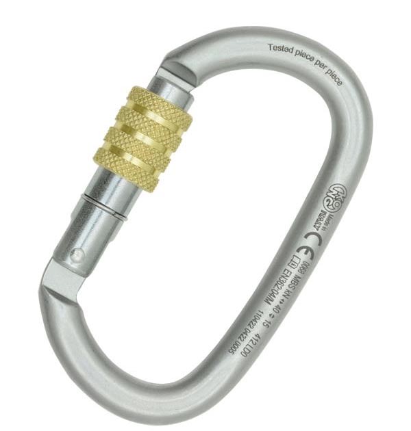 Moschettone ovale in acciaio al carbonio ad ampia apertura e ghiera a vite. Alto carico di 40 KN. Ideale per impieghi gravosi e per il collegamento ad ancoraggi strutturali, linee vita, ecc