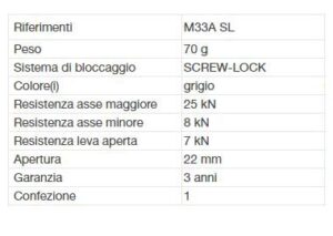 - Moschettone in alluminio la cui leggerezza riduce il peso dell’attrezzatura portata dal lavoratore in quota.
