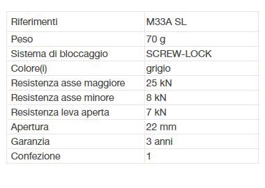 – sistema Keylock per evitare l’aggancio involontario del moschettone. - Profilo ad H: