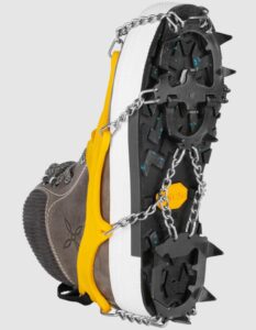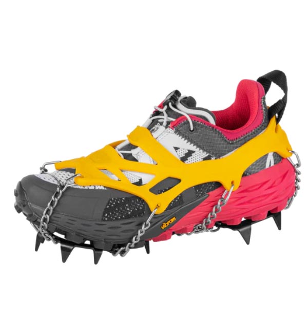 Explorer micro crampon è un ramponcino robusto e compatto, pensato per essere utilizzato in terreni scivolosi, con neve, ghiaccio, fango. Grazie alla forma della gomma si adatta a molti tipi di scarpe e garantisce la stabilità sul piede. 14 punte di acciaio con trattamento anti-corrosione. Laccio posteriore per facilitare la calzata. Fornito insieme alla sua custodia con cerniera. Disponibile in quattro taglie (S-M-L-XL).