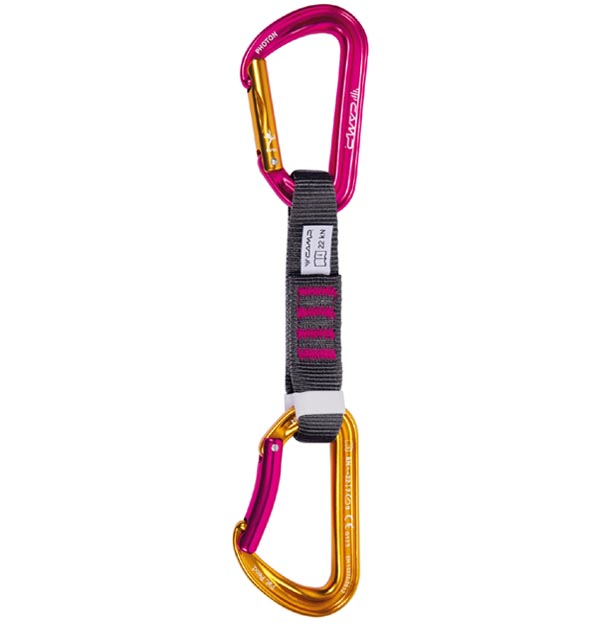 Il Photon Express KS Janja è il rinvio pensato per le realizzazioni a vista, quando ogni grammo e ogni secondo possono fare la differenza. Il Photon garantisce infatti moschettonaggi rapidissimi e senza problemi ed è caratterizzato dal naso con geometria SphereLock che ottimizza il gioco leva-moschettone a vantaggio della sicurezza. La funzionalità del rinvio è accresciuta dalla fettuccia rastremata da 25 mm, disponibile in due lunghezze (12 e 18 cm), che offre un’ottima presa quando si lavorano le vie. Il connettore inferiore è mantenuto in posizione dal Karstop Evo integrato.