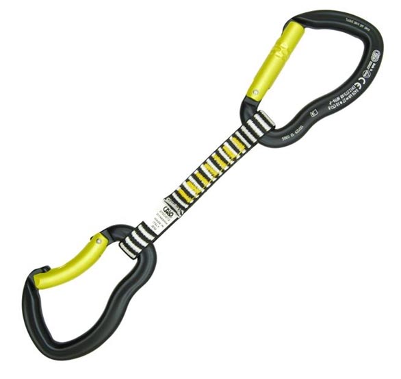Il rinvio Express Ergo Dyneema é composto da due connettori Ergo, uno a leva dritta nella parte superiore e uno a leva curva nella parte inferiore. Fettuccia in Dyneema. Lunghezza: 12cm-26cm.