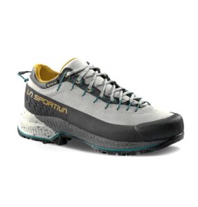 TX4 Evo Woman GTX è la calzatura in pelle con membrana impermeabile GORE-TEX, sviluppata per garantire massima stabilità e grip anche sui terreni più accidentati. Ideale per avvicinamenti tecnici e facili passaggi d’arrampicata, offre un comfort senza eguali grazie ai materiali che compongono la tomaia e agli ampi volumi interni. La membrana GORE-TEX Extended Comfort rende la calzatura impermeabile e traspirante anche durante gli utilizzi prolungati. Il battistrada con mescola Vibram® MegaGrip e con struttura dei tasselli brevettata Impact Brake System™, permette di avere sempre la massima stabilità in fase di discesa e un perfetto controllo della trazione in salita. L’ampia Climbing Zone posta in punta, garantisce precisione e grande aderenza in fase di arrampicata e durante i passaggi più delicati. La speciale intersuola con inserto brevettato Resole Platform™, permette di risuolare TX4 Evo Woman GTX senza inficiarne le caratteristiche tecniche e di comfort. Risuolare le proprie calzature significa allungarne il ciclo di vita e quindi evitare gli sprechi.