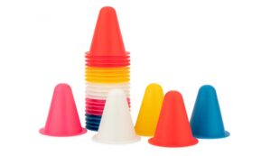 Dimensioni Compatte: Ogni cono ha un’altezza di 8 cm, il che li rende discreti ma chiaramente visibili durante l’esercizio.