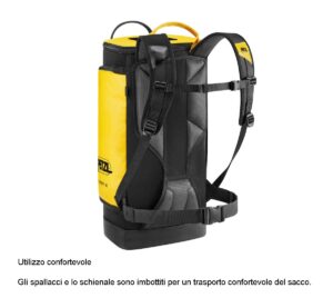 – il sacco può essere portato sulla schiena, utilizzando gli spallacci, ma anche tramite uno dei manici disponibili,
